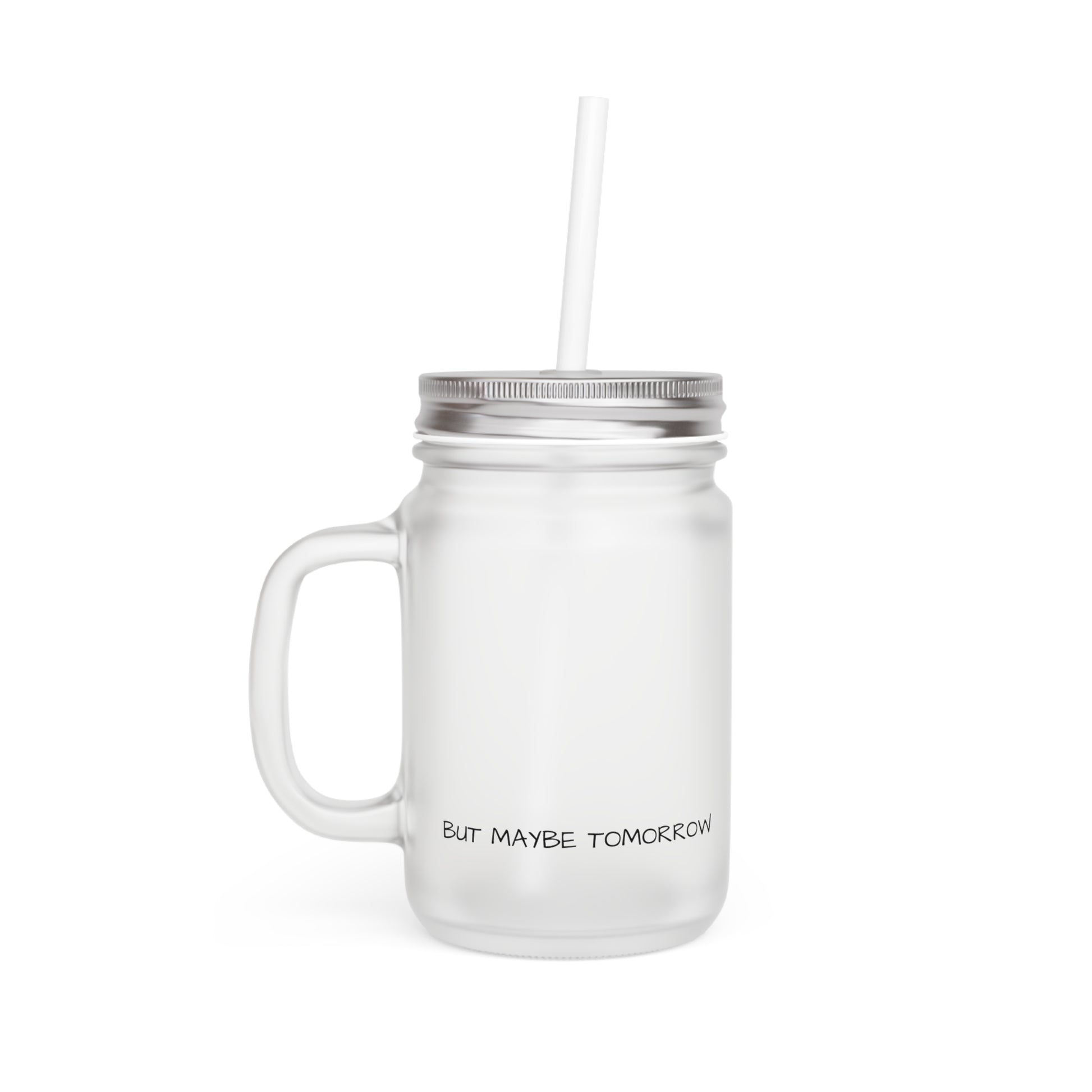 Not Today Satan - But Maybe Tomorrow - Mason Jar with Straw - Frosted Glass Mug for Witchy Vibes